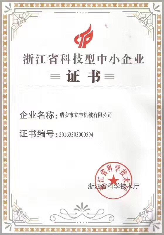 立丰机械被评为“浙江省科技型中小... 2017-06-17 热烈庆祝瑞安市立丰机械有限公司被...